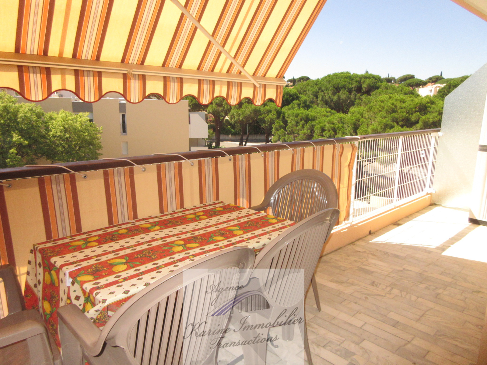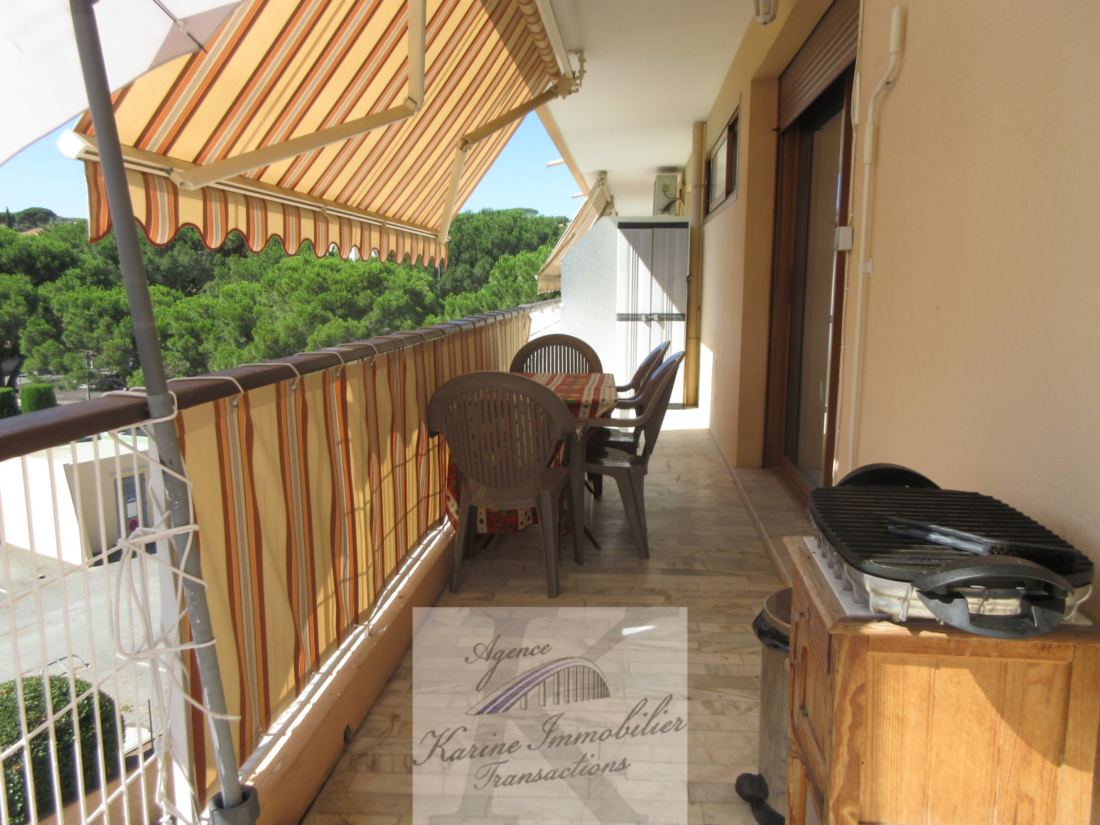Dans résidence scurisée avec piscine, appartement de 43 m² comprenant une entrée, un séjour donnant sur une grande terrasse de 24 m², une cuisine américaine, une chambre donnant également sur la terrasse, un coin nuit, une salle de douche avec wc.
