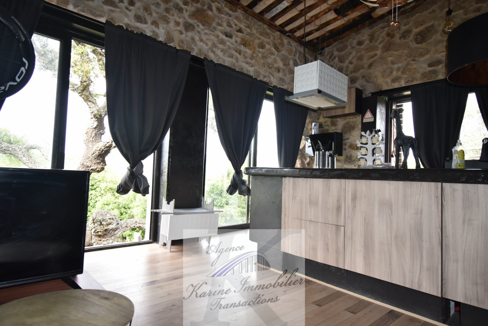 A 10 minutes du village du plan de la tour, dans un hameau au calme, jolie maison rénovée comprenant un séjour avec cuisine américaine donnant sur une terrasse, au niveau inférieur, on retrouve une chambre avec salle de bain ouverte et wc séparé.